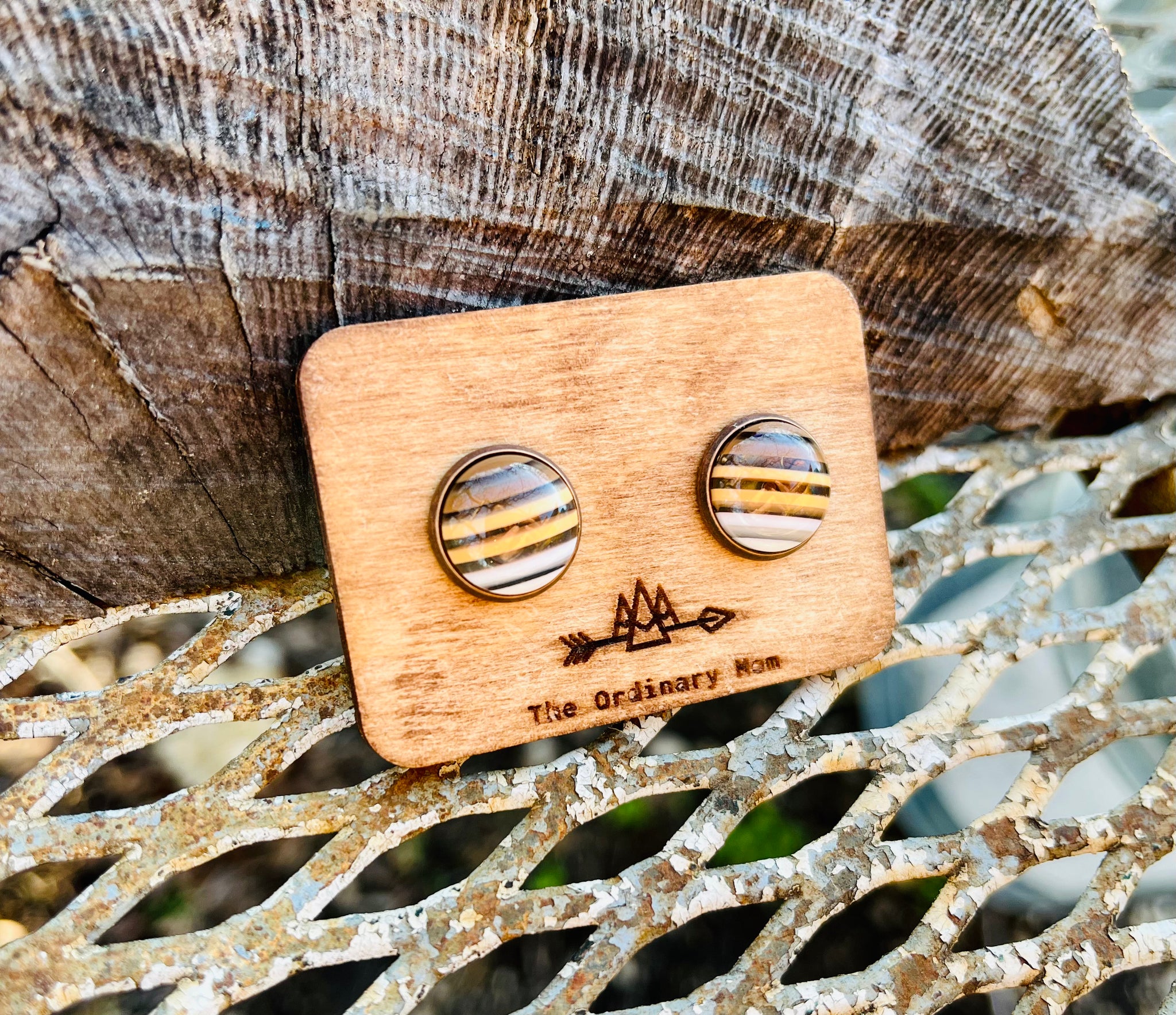 Earrings measure 12mm (average size). Each earring comes with a rubber safety back for comfy all day wear.