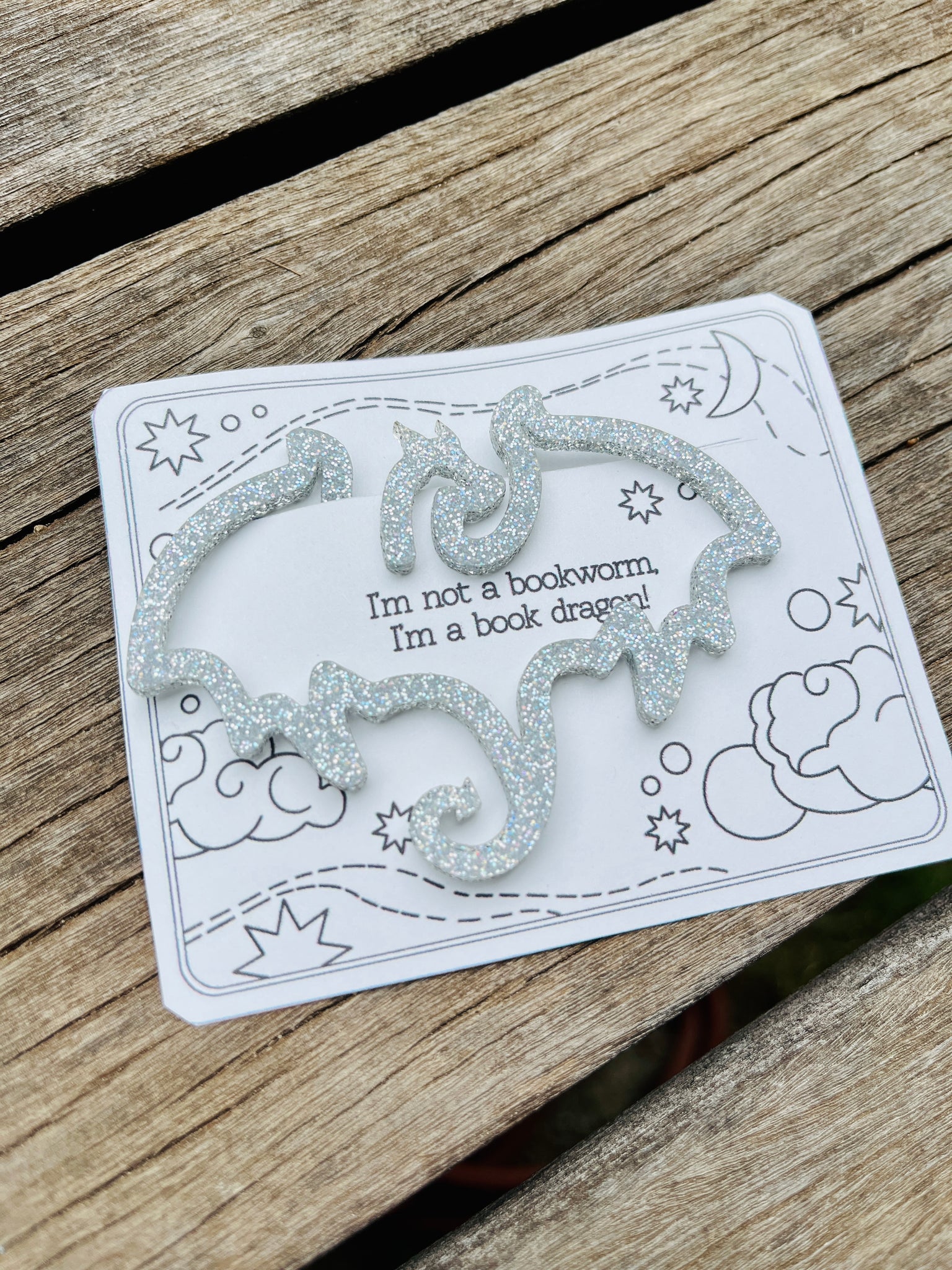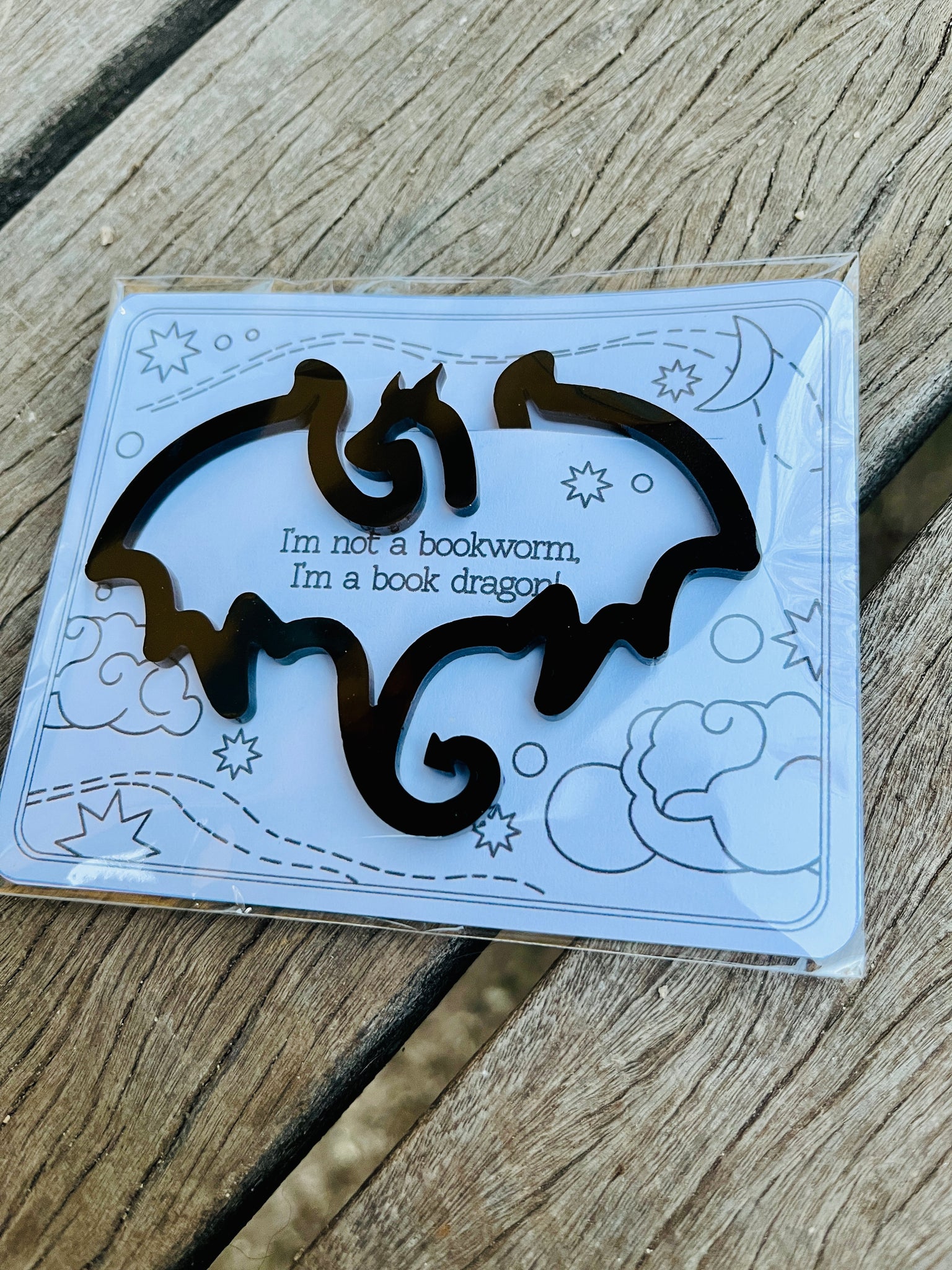 Use this dragon to keep your place in your favorite book, journal, or planner. Made from acrylic, these bookmarks are lightweight yet sturdy.