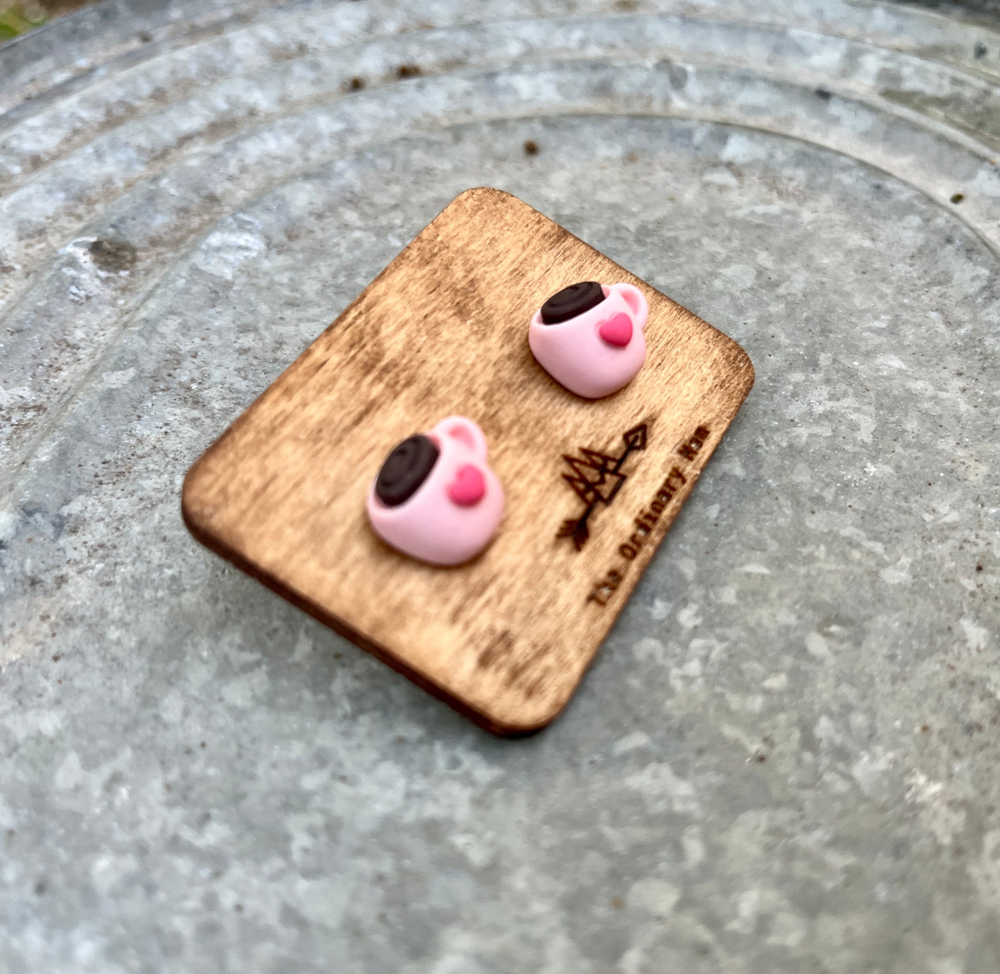 Earrings measure about half an inch and have nickel and lead free hardware. Each earring comes with a rubber safety back for comfy all day wear.