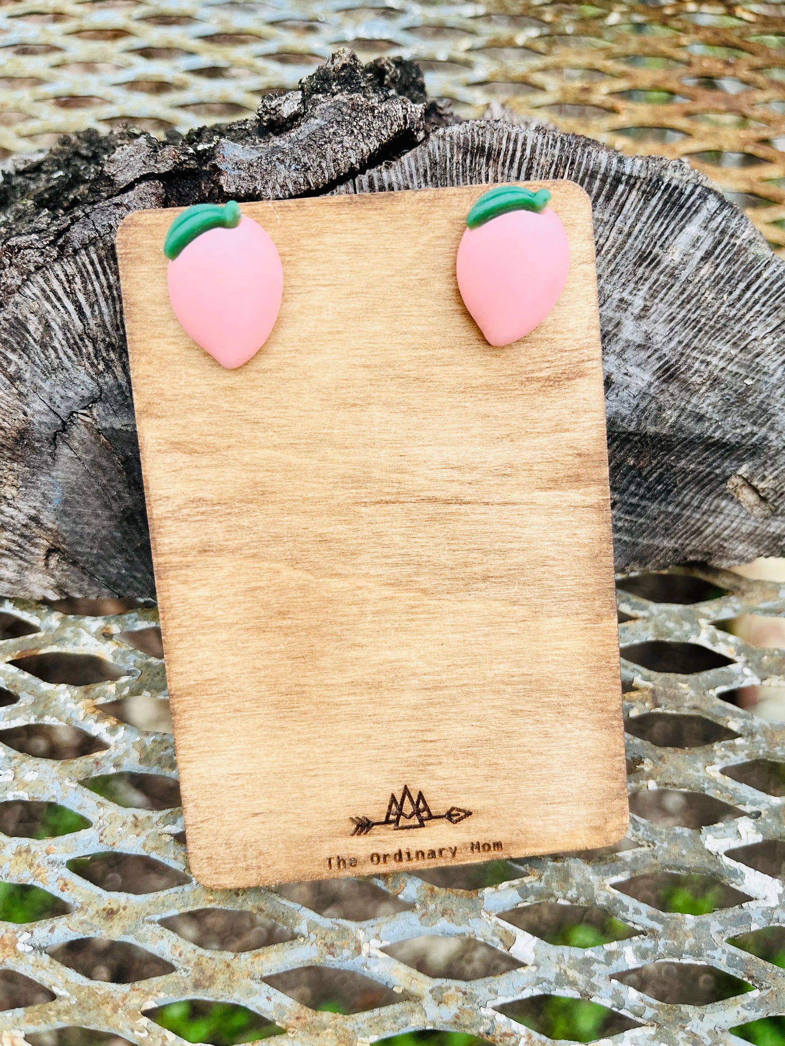 Each peach measures a little over one half inch, so a little bit of an oversized stud. Nickel and lead free hardware. Each earring comes with a rubber safety back for comfy all day wear.