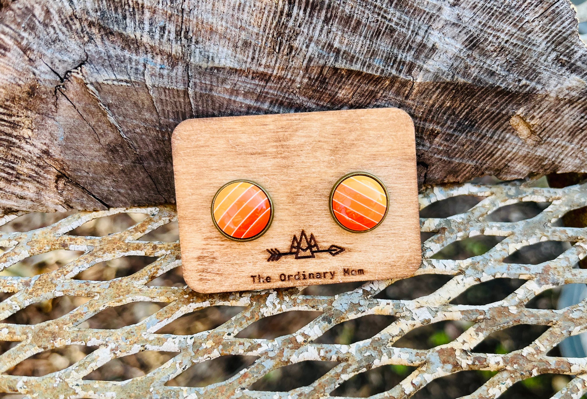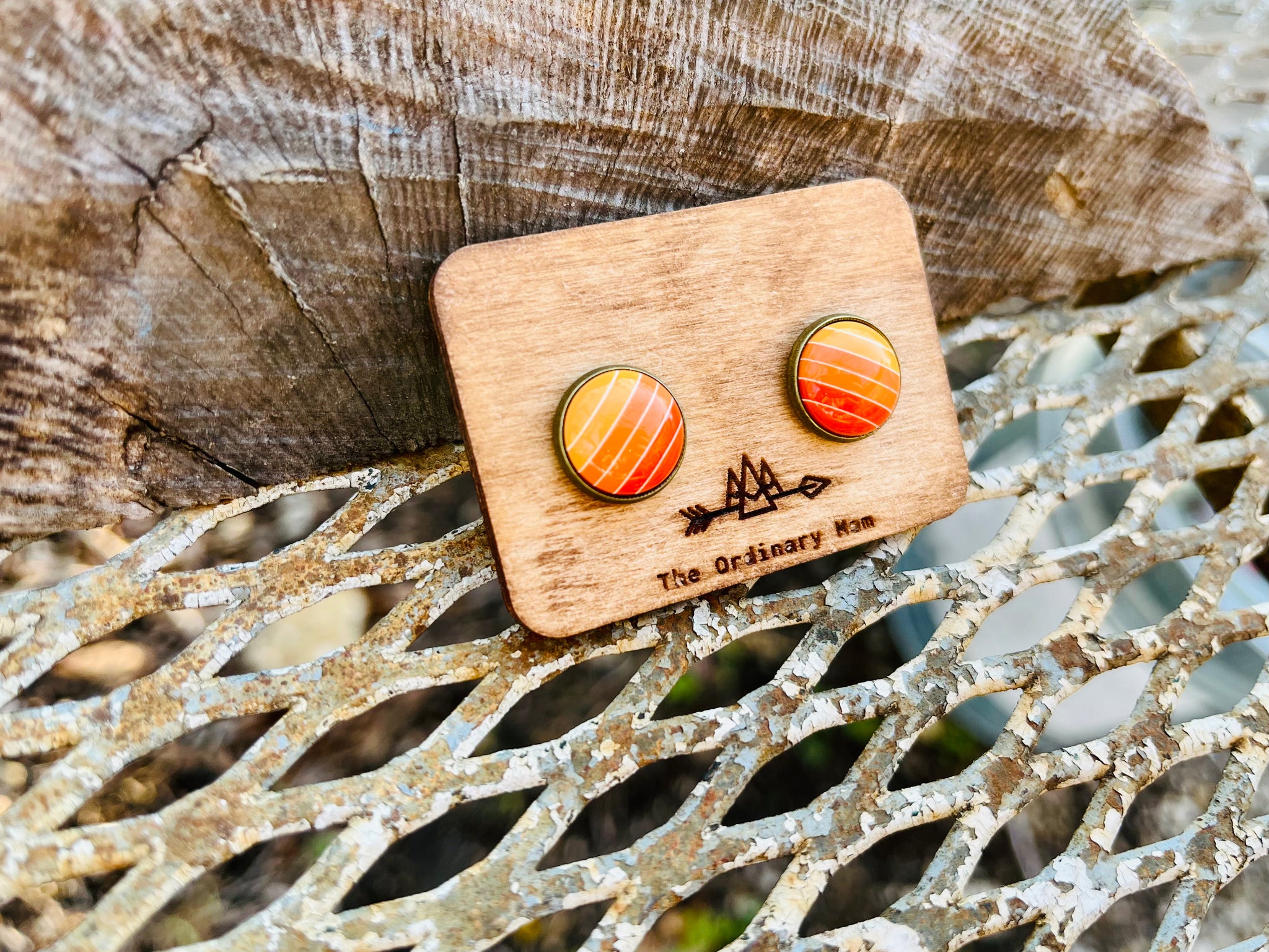Sunrise is an orange ombre resin dome. Nestled in a bronze stainless steel bezel for added color.